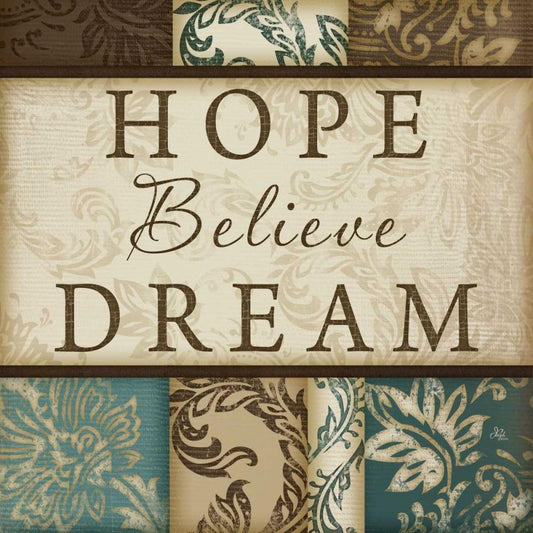 Hope Believe Dream White Modern Wood Framed Art Print with Double Matting by Pugh, Jennifer