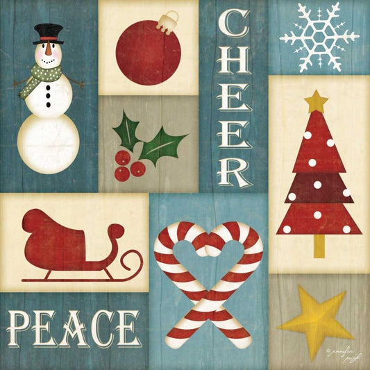 Holiday Sampler Blue - I White Modern Wood Framed Art Print with Double Matting by Pugh, Jennifer