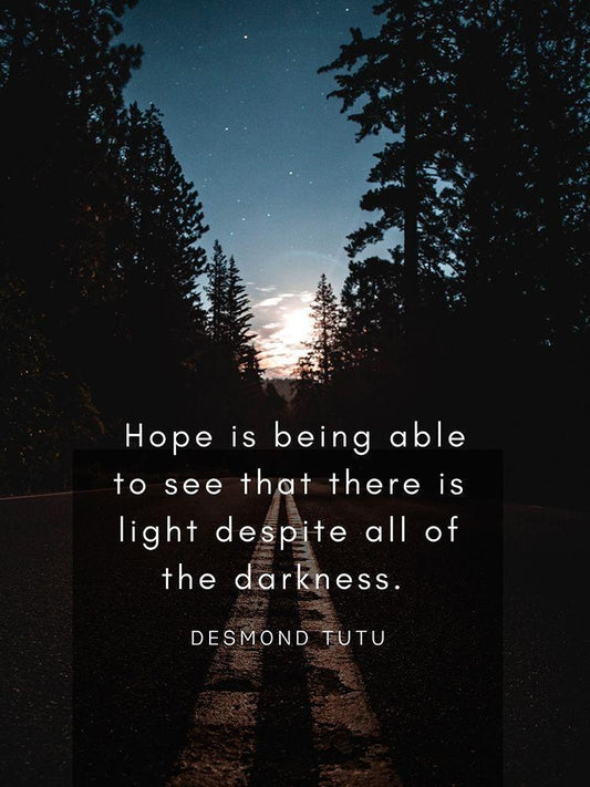Desmond Tutu Quote: There is Light White Modern Wood Framed Art Print with Double Matting by ArtsyQuotes