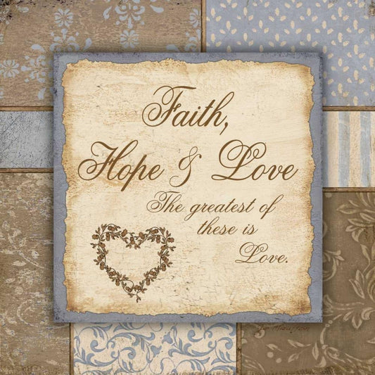 Faith Hope and Love White Modern Wood Framed Art Print with Double Matting by Moulton, Jo