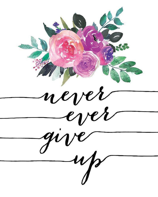Never Give Up White Modern Wood Framed Art Print with Double Matting by Moulton, Jo