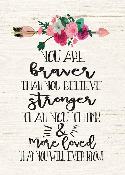 You Are Braver White Modern Wood Framed Art Print with Double Matting by Moulton, Jo
