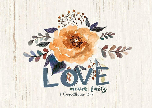 Love Never Fails White Modern Wood Framed Art Print with Double Matting by Moulton, Jo