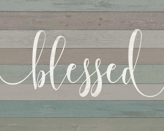 Rustic Blessed Script White Modern Wood Framed Art Print with Double Matting by Moulton, Jo