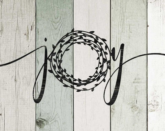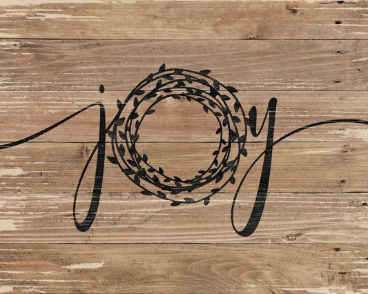 Joy Rustic Wreath White Modern Wood Framed Art Print with Double Matting by Moulton, Jo