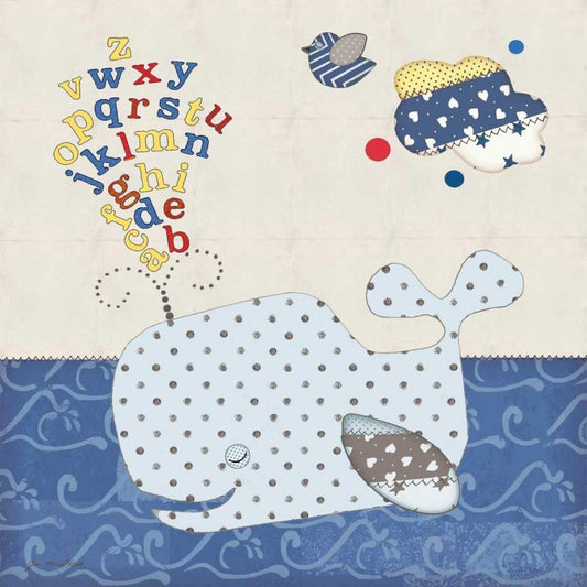 Alphabet Whale White Modern Wood Framed Art Print with Double Matting by Moulton, Jo