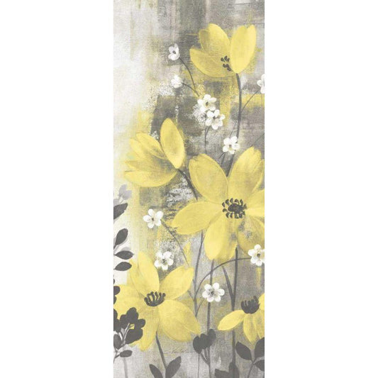 Floral Symphony Yellow Gray Crop I Black Modern Wood Framed Art Print by Vassileva, Silvia
