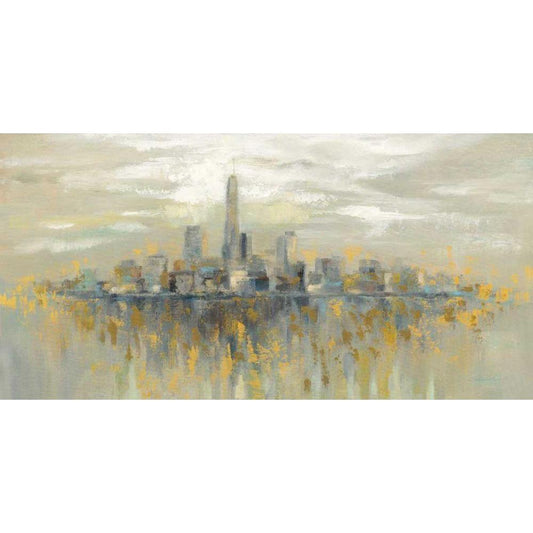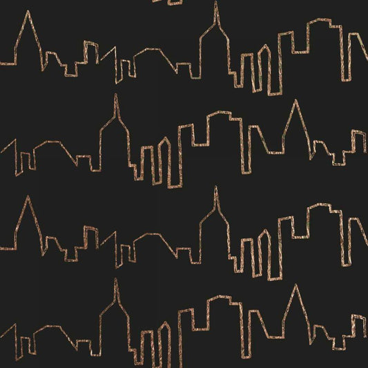 NY Chic Skyline gold on black Black Modern Wood Framed Art Print by Fabiano, Marco