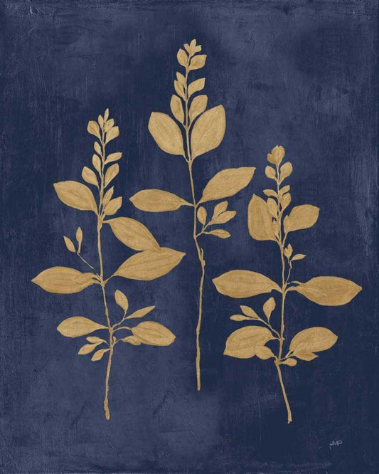 Botanical Study IV Gold Navy White Modern Wood Framed Art Print with Double Matting by Purinton, Julia