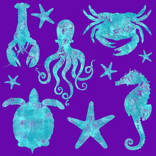 Sponge Crab Aqua Black Modern Wood Framed Art Print by Lavoie, Tina