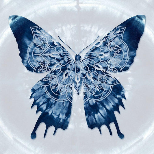 Butterfly Indigo Batik Mandala Black Modern Wood Framed Art Print by Lavoie, Tina