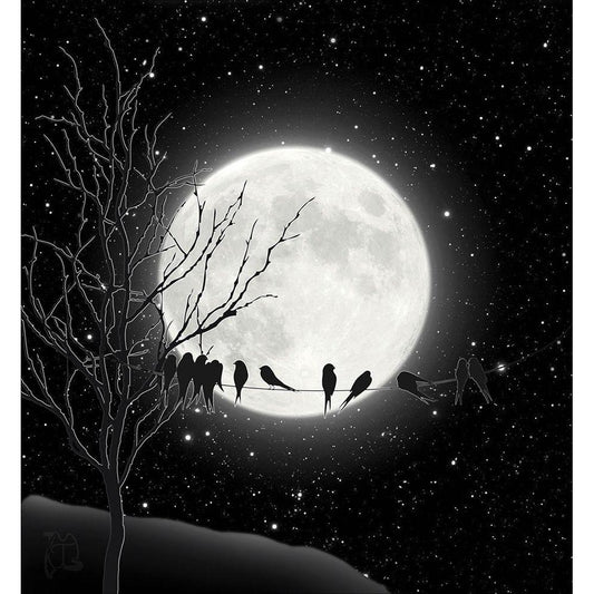 Moonlight Christmas Day Black Modern Wood Framed Art Print by Sasha