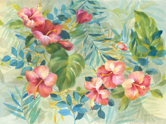 Hibiscus Garden White Modern Wood Framed Art Print with Double Matting by Nai, Danhui