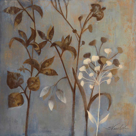 Branches in Dusty Blue I White Modern Wood Framed Art Print with Double Matting by Vassileva, Silvia