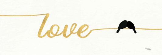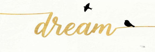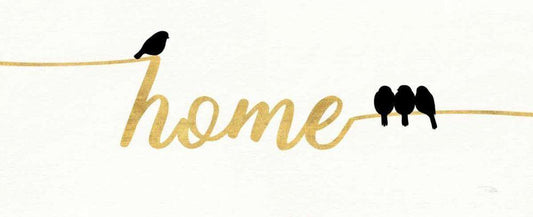 Birds on Words I Gold White Modern Wood Framed Art Print with Double Matting by Pela