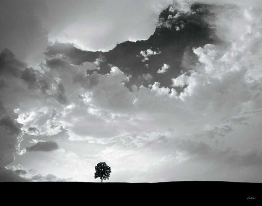 Lone Tree White Modern Wood Framed Art Print with Double Matting by Aledanda