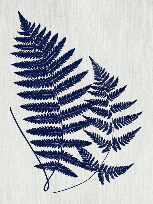 Indigo Fern Botanical I White Modern Wood Framed Art Print with Double Matting by Lavoie, Tina