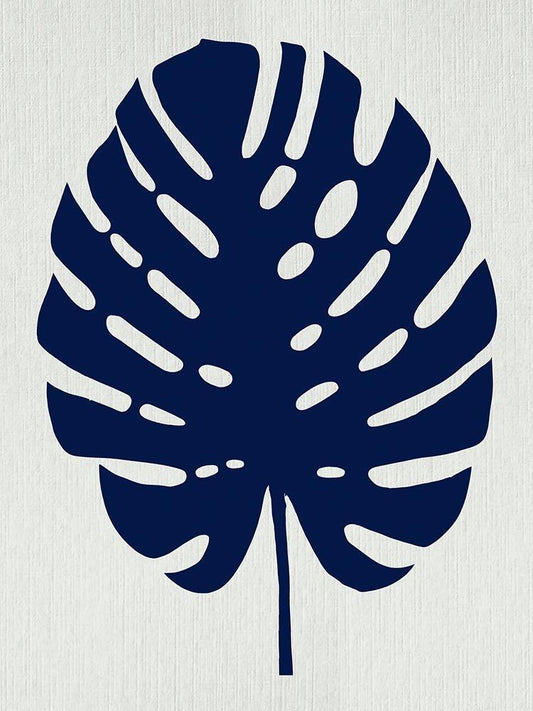 Indigo Monstera Botanicals I White Modern Wood Framed Art Print with Double Matting by Lavoie, Tina