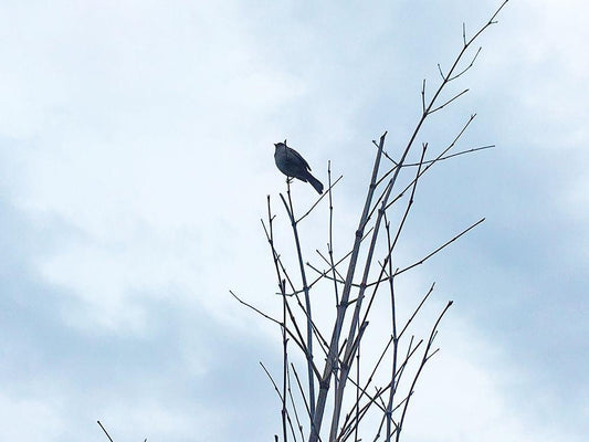 Bird Silhouette: Original White Modern Wood Framed Art Print with Double Matting by Popcorn