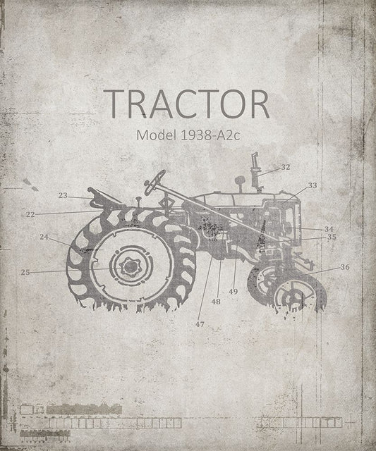 Industrail Farm Tractor Blue Print_BW White Modern Wood Framed Art Print with Double Matting by LightBoxJournal