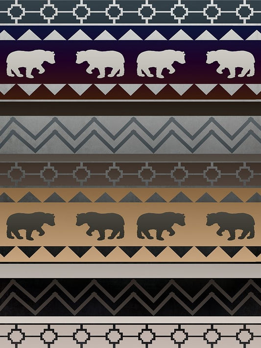 Bear Pattern Sunset Gradient White Modern Wood Framed Art Print with Double Matting by LightBoxJournal