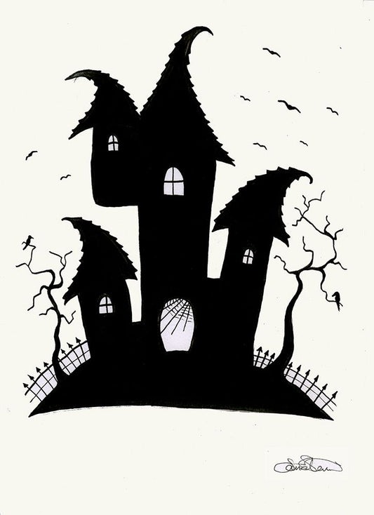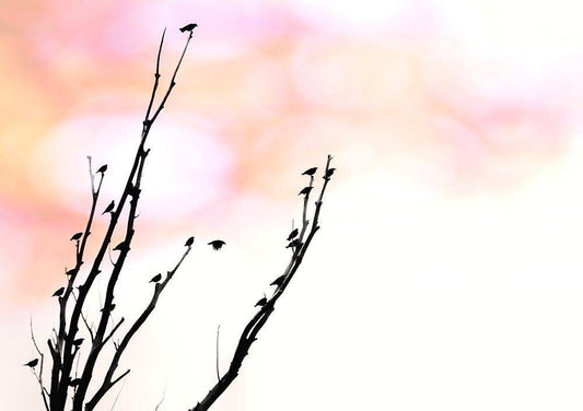 Tree Silhouette and Birds White Modern Wood Framed Art Print with Double Matting by Schell, Jennie Marie