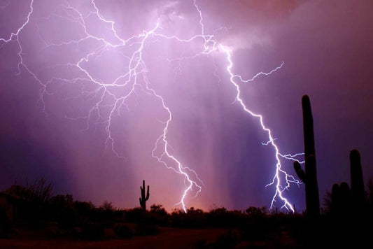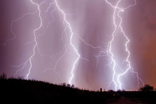 Dancing Lightning White Modern Wood Framed Art Print with Double Matting by Taylor, Douglas