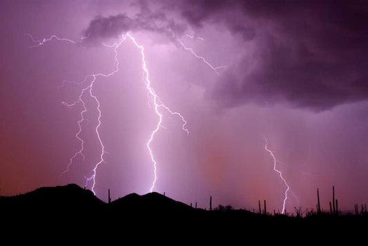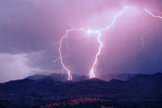 Mountian Lightning White Modern Wood Framed Art Print with Double Matting by Taylor, Douglas