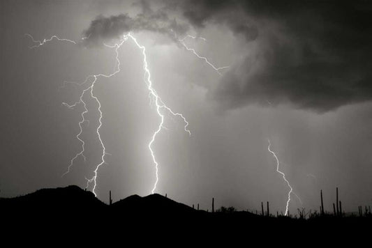 Summer Lightning I - BW White Modern Wood Framed Art Print with Double Matting by Taylor, Douglas