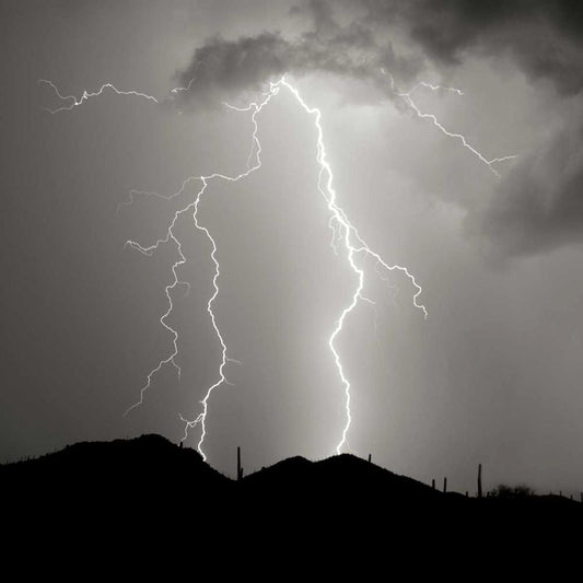 Mountain Lightning Sq. BW White Modern Wood Framed Art Print with Double Matting by Taylor, Douglas