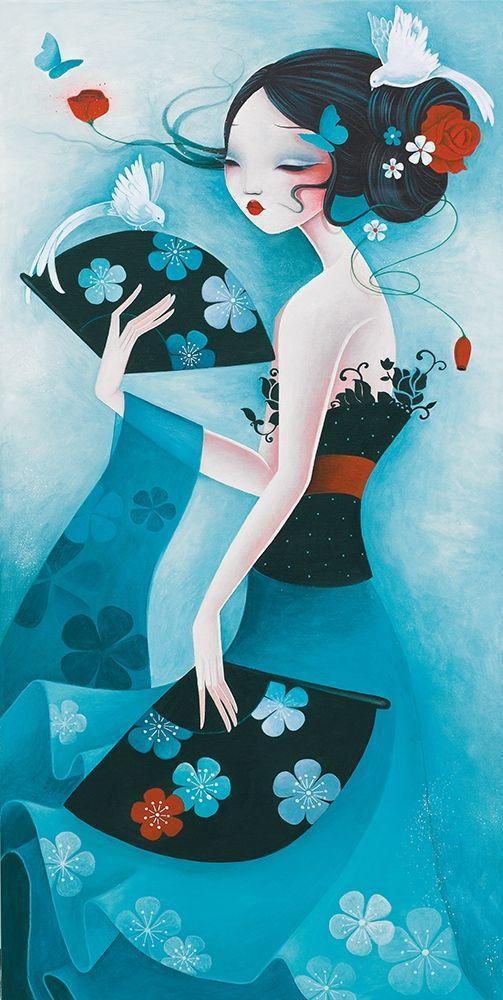 Gypsy dance White Modern Wood Framed Art Print with Double Matting by Ingrid, B.