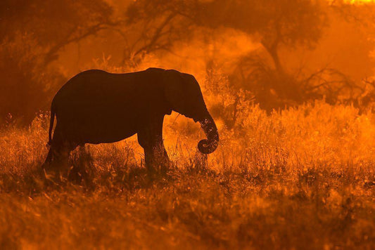 Golden Elephant In Savute Black Ornate Wood Framed Art Print with Double Matting by Moreno, Mario