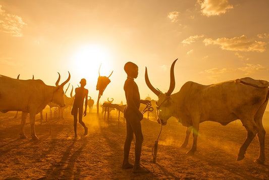Sunset In The Serengeti Black Ornate Wood Framed Art Print with Double Matting by Vigo, Mario