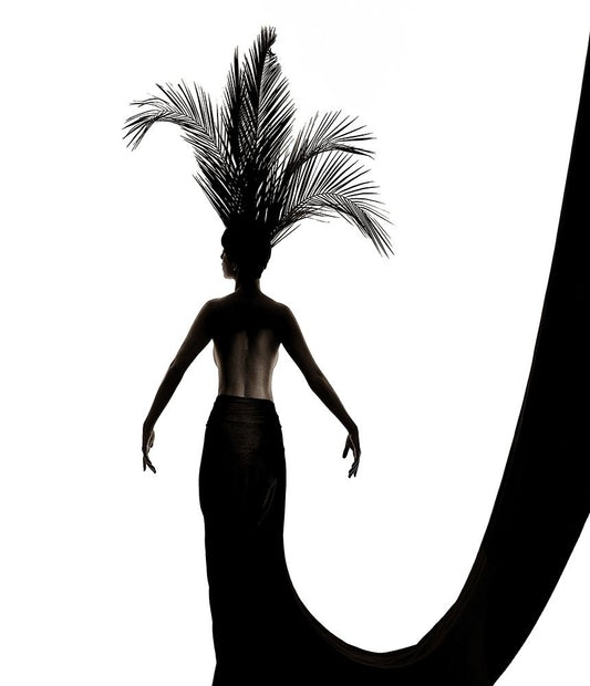Palm Leaf Headdress Black Ornate Wood Framed Art Print with Double Matting by Kustas, Anders