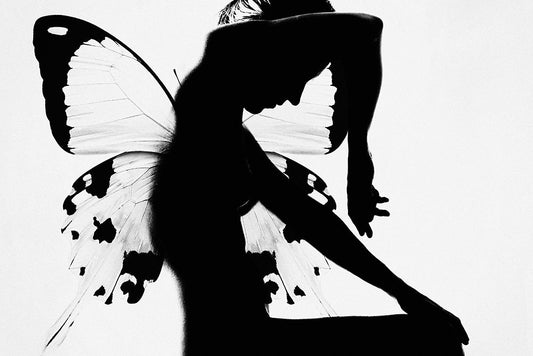 Butterfly Woman Black Ornate Wood Framed Art Print with Double Matting by Blom, Therese