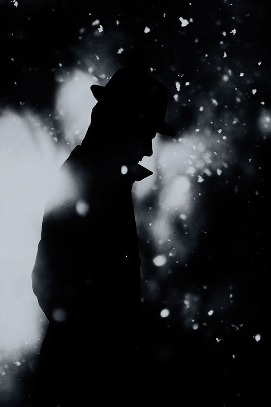 Cold Winter Night Silhouette Black Ornate Wood Framed Art Print with Double Matting by PhotoCosma