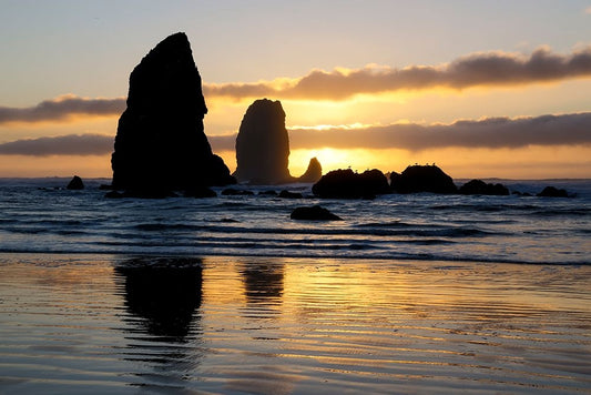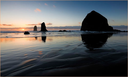 USA- Oregon. Cannon Beach and Haystack Rock at sunset Black Ornate Wood Framed Art Print with Double Matting by Gulin, Darrell