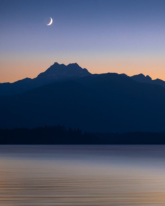 USA-Washington State-Seabeck Crescent moon at sunset over Hood Canal and Olympic Mountains Black Ornate Wood Framed Art Print with Double Matting by Jaynes Gallery