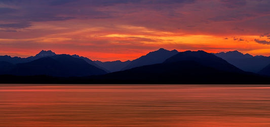 Washington State-Seabeck Sunset over mountains and Hood Canal Black Ornate Wood Framed Art Print with Double Matting by Jaynes Gallery