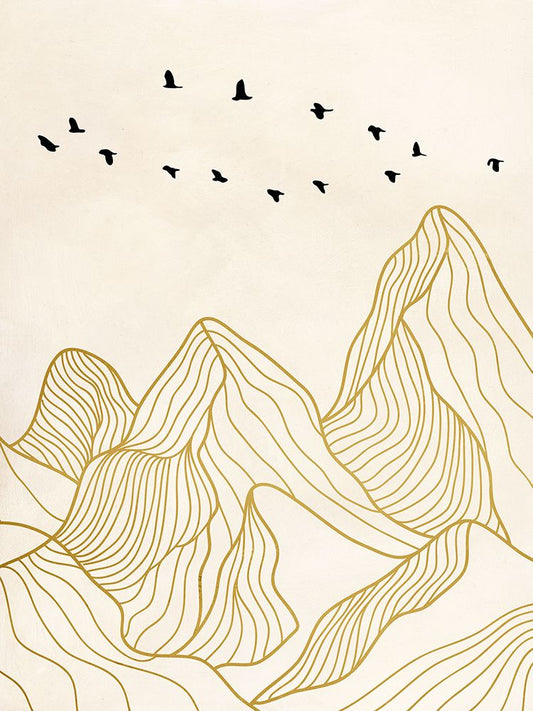 Migrant Birds I Black Ornate Wood Framed Art Print with Double Matting by Miko, Sayaka