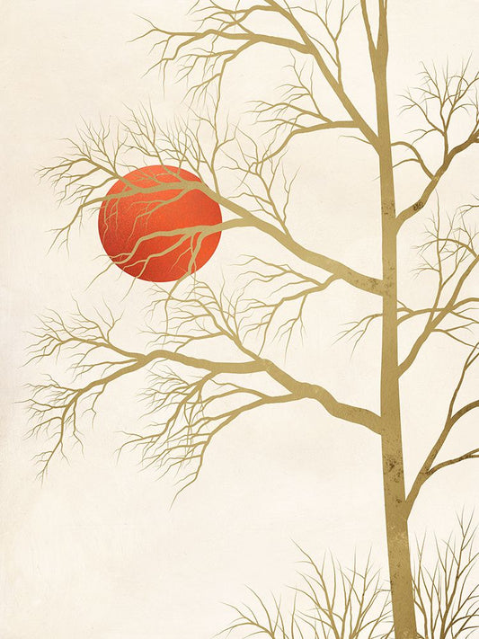 Red Sunset Black Ornate Wood Framed Art Print with Double Matting by Miko, Sayaka