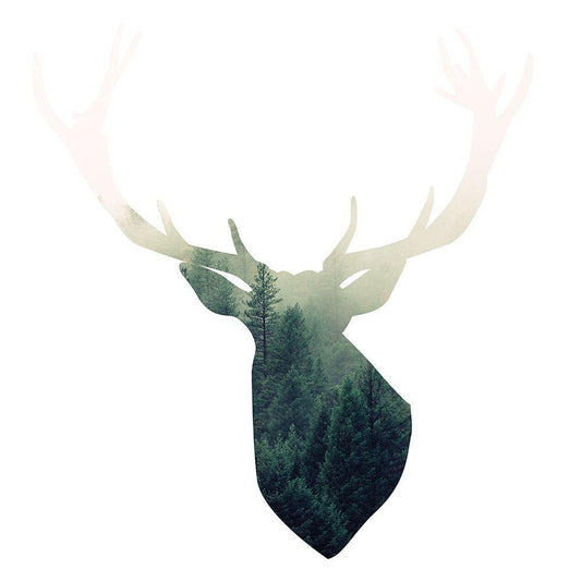 DEER HEAD WITH GREEN LANDSCAPE SHAPE White Modern Wood Framed Art Print with Double Matting by Atelier B Art Studio