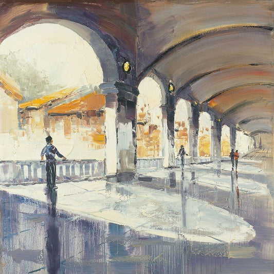 People in a spacious hall White Modern Wood Framed Art Print with Double Matting by Atelier B Art Studio