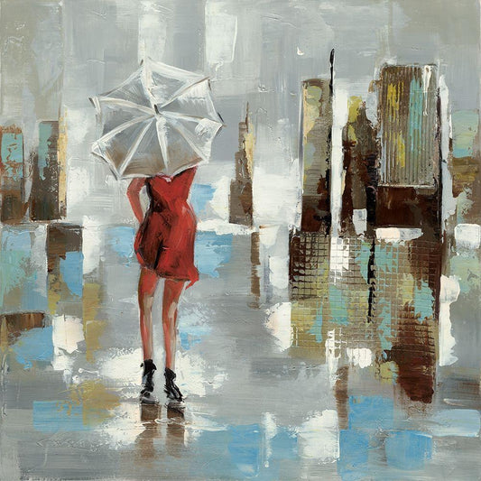 Red dress woman White Modern Wood Framed Art Print with Double Matting by Atelier B Art Studio