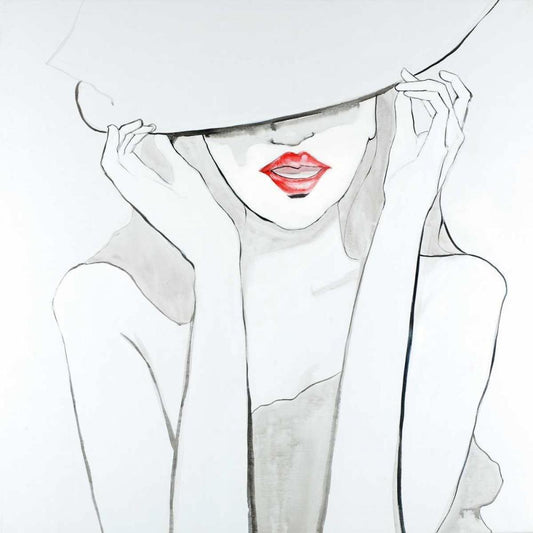 Woman with Big Hat White Modern Wood Framed Art Print with Double Matting by Atelier B Art Studio