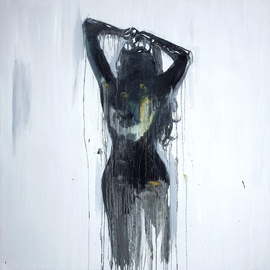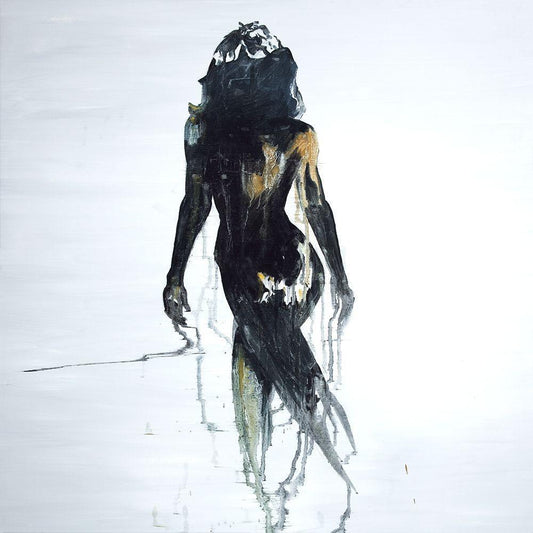 ABSTRACT BACK VIEW OF A WOMAN SILHOUETTE White Modern Wood Framed Art Print with Double Matting by Atelier B Art Studio