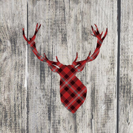 Left Side Deer Silhouette on Wood White Modern Wood Framed Art Print with Double Matting by Atelier B Art Studio