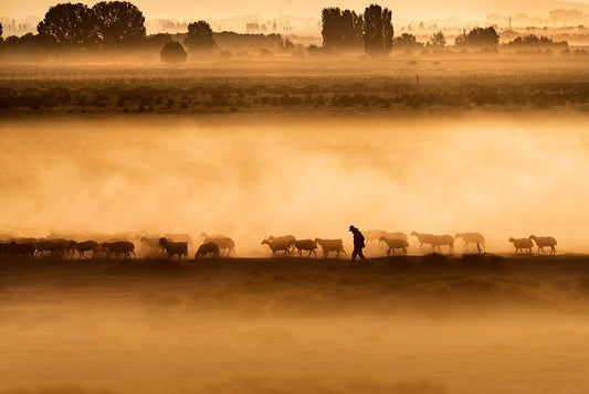 Shepherd-Hard Life White Modern Wood Framed Art Print with Double Matting by Durmusceylan