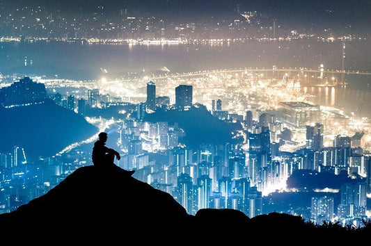 City Watcher White Modern Wood Framed Art Print with Double Matting by Ling, Ar