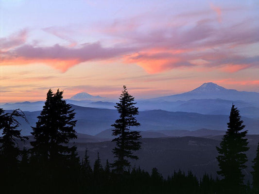 Washington State Sunset landscape with Mt Adams and Mt Rainier White Modern Wood Framed Art Print with Double Matting by Jaynes Gallery